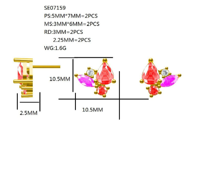 Dimensions: 2.5*10.5mm, Silver with 5*7 deep blue pear zircon