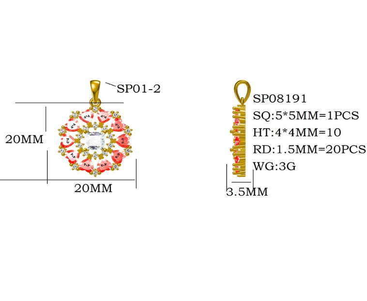 20*20**3.5mm and 4.4mm heart white zircon, 5.5 square white zircon and 1.5 mm circle zircon