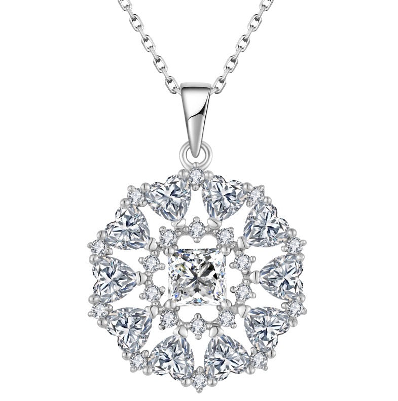 Beautiful pendant, round, with heart shaped zircons.